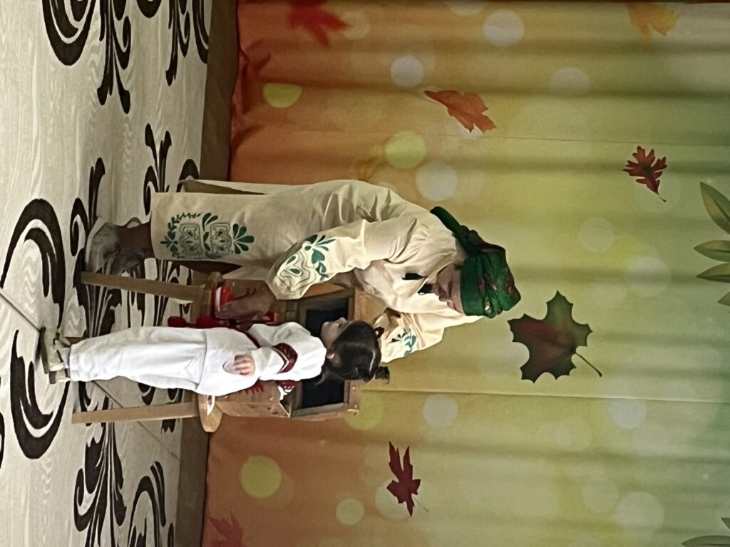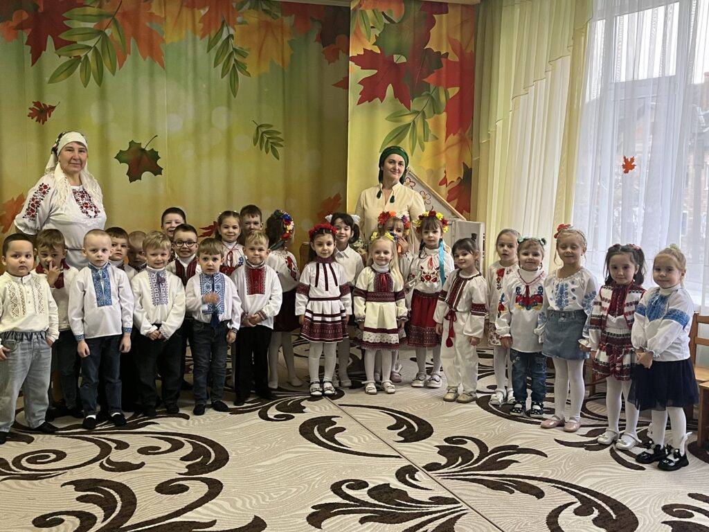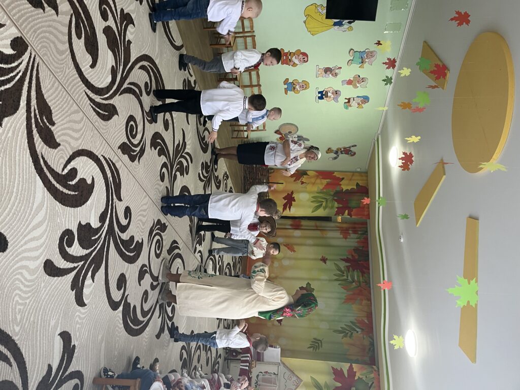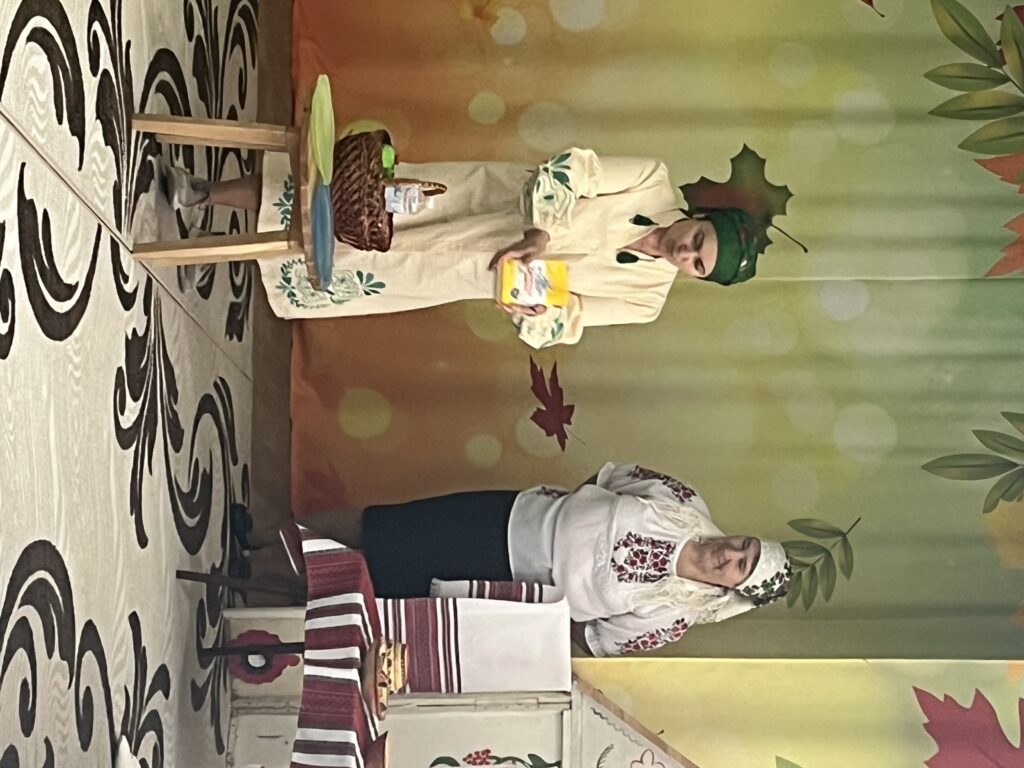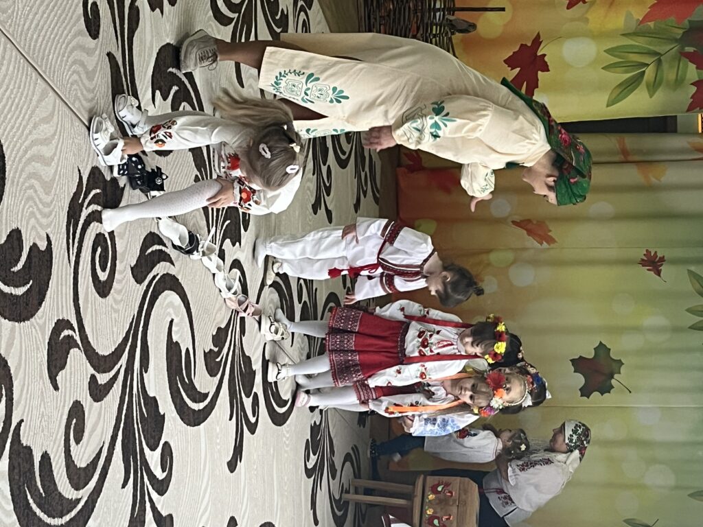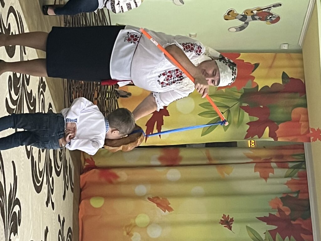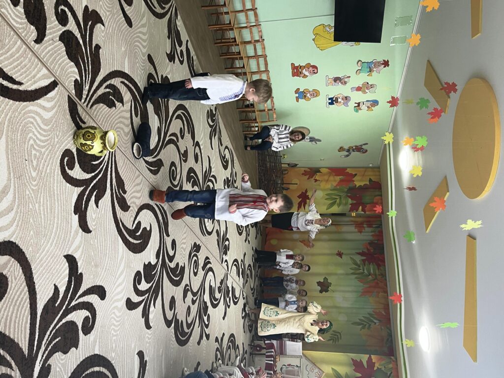 Сьогодні наша зала перетворилася на справжню українську світлицю з веселими забавами , іграми та кусанням калити.